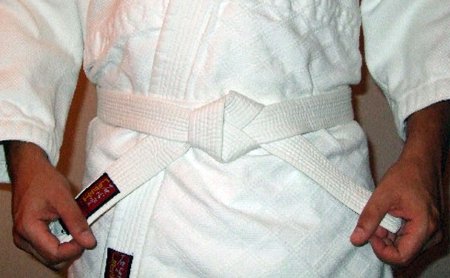 Es gibt verschiedene Arten, den Gürtel zu binden. Wichtig ist, dass der Knoten weder aufgeht noch dick aufträgt. Und kompliziert soll er auch nicht sein. Hier eine